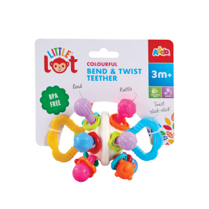 Naturally curious babies will have a ball twisting, clicking and chewing this colourful teether that’s packed with sensory experiences. With spinning rings, bendy handles and textured nodules to explore, it’ll soothe sore gums while boosting development through tactile play.
