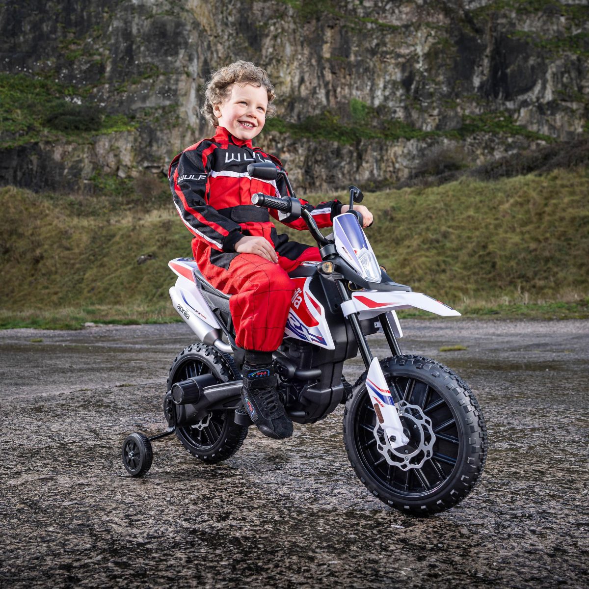 Gear up for a thrilling time with this Aprilia ride-on that brings real-bike features to the playground. With a 12V rechargeable battery lasting 1 to 2 hours, the bike reaches a top speed of up to 6.0km/h and features a working headlight, rear suspension and removable stabilisers.