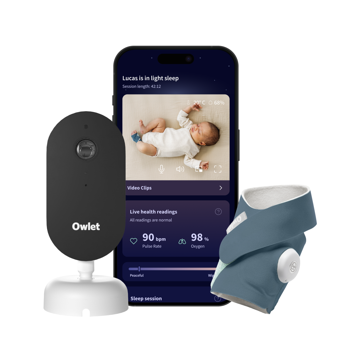 Dream Sight can be paired with the Dream Sock smart baby monitor and the Owlet Dream App for a single, integrated monitoring and video solution, allowing you to track your child’s oxygen level, pulse rate and sleep trends with hospital-grade accuracy.