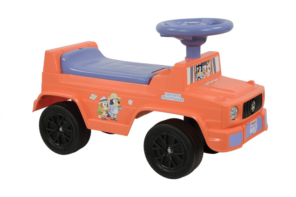 Bring the world of Bluey to life with this themed ride-on that features a working horn and sounds, chunky tyres, comfort moulded steering, forward and reverse gears and foot pedal control. Bluey details, along with a cup holder and spare tyre styling, make for extra fun and imaginative play.