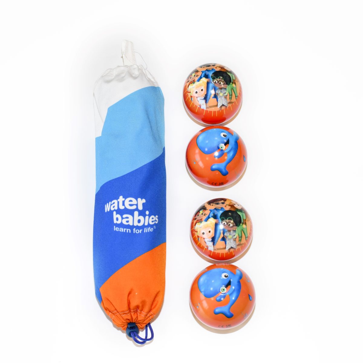 Make a splash with this set of four bright orange balls, perfectly sized for little hands and neatly packed in a cotton sleeve. Great for water play, these easy-to-grip balls boost hand-eye coordination and early swimming skills, turning any splash into a skillbuilding adventure.