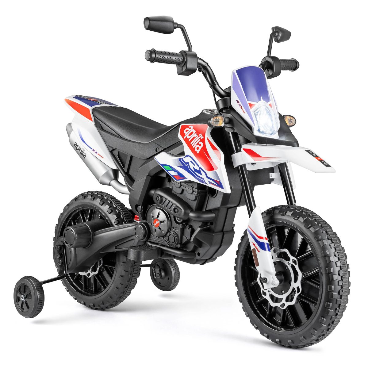 Gear up for a thrilling time with this Aprilia ride-on that brings real-bike features to the playground. With a 12V rechargeable battery lasting 1 to 2 hours, the bike reaches a top speed of up to 6.0km/h and features a working headlight, rear suspension and removable stabilisers.